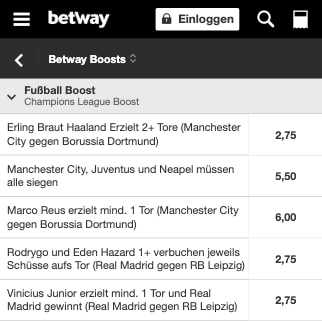 Die Betway Boosts können alle Kunden nach dem Login nutzen. Wer noch kein Wettkonto hat, muss sich lediglich registrieren, einzahlen und schon kann man mit den Betway Quotenboosts tippen.